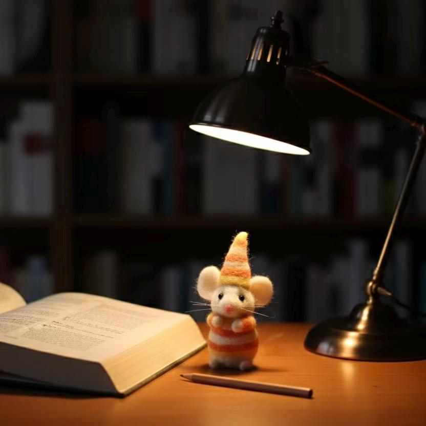 Handmade Felt Mouse Ornament – Wool Christmas Decor, Striped Hat