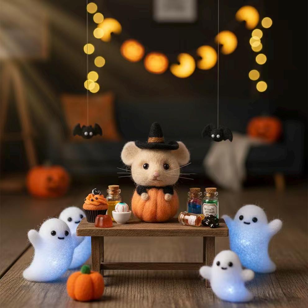 Handmade Felt Mouse Ornament – Wool Christmas Mouse with Striped Hat or Pumpkin Outfit, Cozy Winter Gift for Kids & Home Decor
