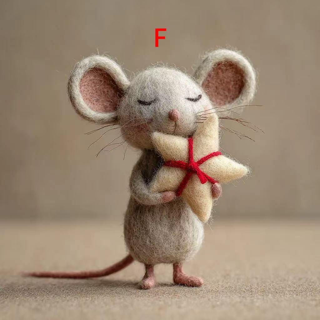 Handmade Needle Felted Christmas Mouse – Cute Wool Felt Mouse Figurine Holding Cheese, Cozy Holiday Home Decor, Gift for Christmas