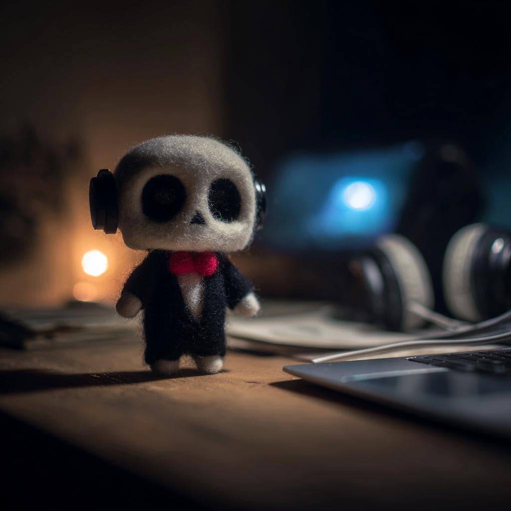 Handmade Needle Felted Skeleton Doll – Cute Halloween Decor, Wool Felt Grim Reaper Figurine, Spooky Gift for Halloween Lovers