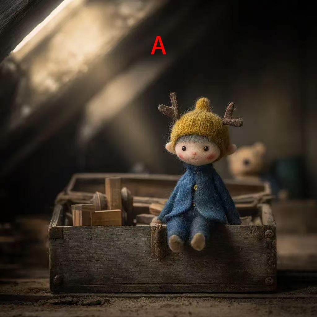 Handmade Needle Felted Woodland Doll – Forest Elf, Fox, and Little Red Girl, Wool Felt Figurines, Perfect for Christmas Tree Ornament