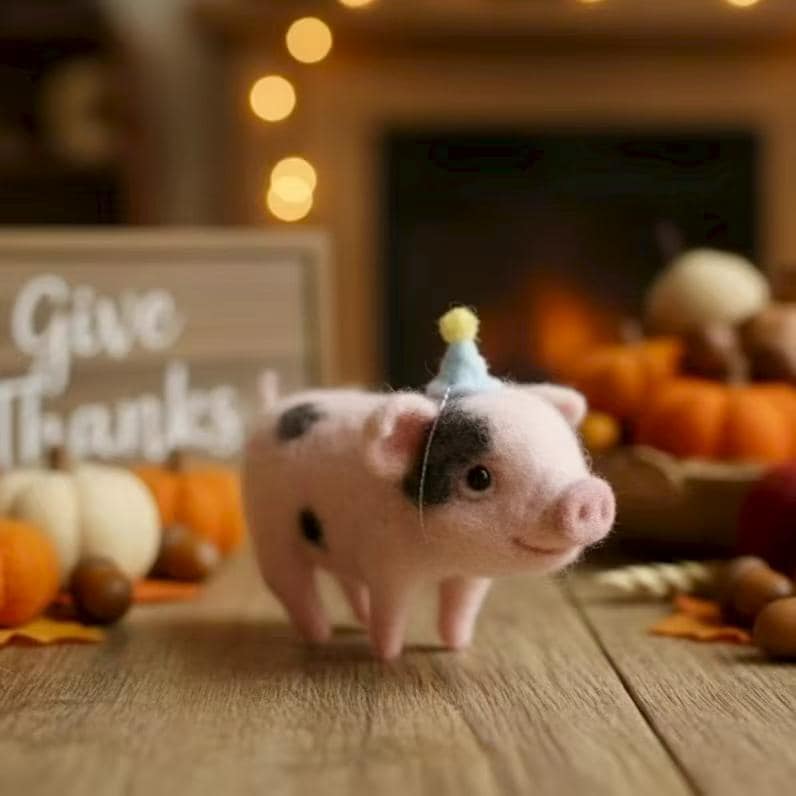 Handmade Wool Felt Piglet Figurine β Cute Birthday or Christmas Gift, Party Hat Pig Sculpture, Adorable Farm Animal Decor
